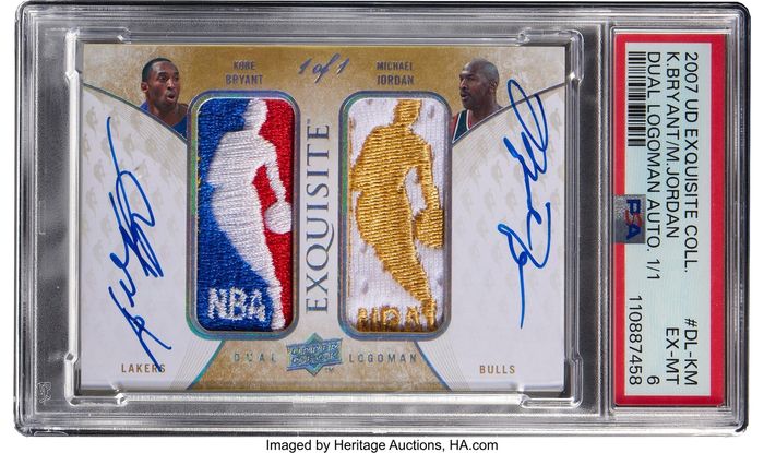 영국 BBC 방송에 따르면 헤리티지 옥션이 진행한 경매에 출품된 ‘2007-08 어퍼덱 익스퀴짓 시리즈 조던&브라이언트 듀얼 로고맨 사인 카드’가 1290만 달러(약 179억 원)에 팔렸다.