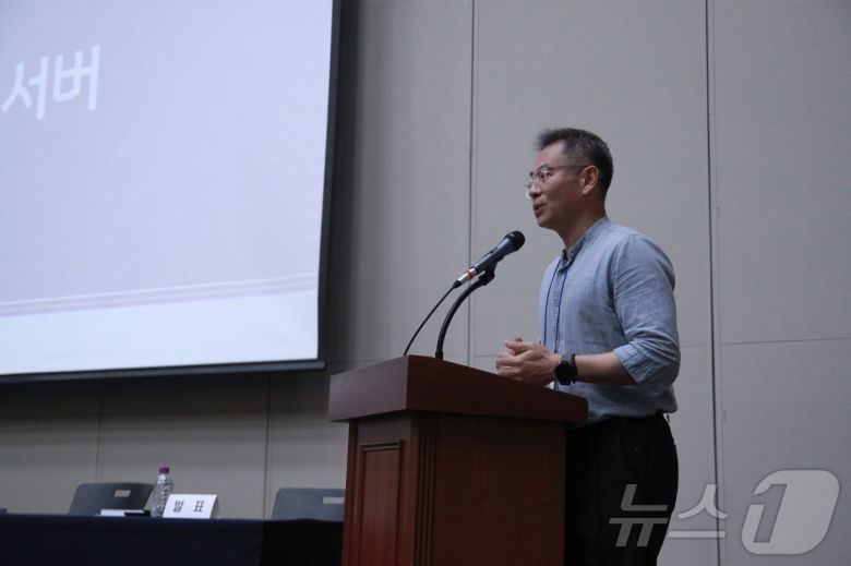 김범수 게임물관리위원회 사후관리본부장이 25일 부산항국제전시컨벤션센터(BPEX)에서 열린 '불법 사설 서버 대응과 개선 방안' 학술대회에서 발표하고 있다.2025.8.25/뉴스1 ⓒ News1 김민재 기자 |