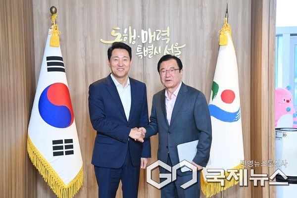 (하남=국제뉴스) 강정훈 기자 = 이현재 하남시장은 지난 22일 오세훈 서울시장을 만나 위례신사선 하남연장 감일·위례 시내버스 31번 마천역 연결 서울시 버스노선 연장 위례신도시 따릉이 서비스 확대 등 주요 교통현안을 건의했다.