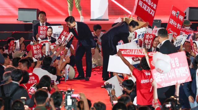 결국 당심의 향방이 장동혁의 '강경 노선'으로 갈지, 김문수의 '통합 기조'를 선택할지가 관건이다. 한 친윤(친윤석열)계 의원은 아주경제와 만나 "김 후보가 상황에 따라 노선을 바꾼 측면이 있다"며 "당원들의 평가가 관건"이라고 평가했다. 당 지도부 관계자도 "처음에는 김 후보가 압도적이었지만, 사실 분위기가 뒤숭숭하다"며 "당원들이 탄핵과 대선 이후 이어진 내부분란에 대해 분노한 상태"라고 의견을 보탰다.