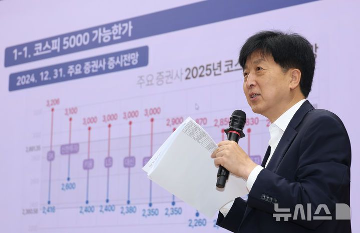 [서울=뉴시스] 고승민 기자 = 오기형 더불어민주당 코스피5000특위 위원장이 15일 서울 여의도 국회 의원회관에서 열린 '경제는 민주당' 특강에서 '코리아 디스카운트를 넘어 코리아 프리미엄으로'를 주제로 강연하고 있다. 2025.07.15. kkssmm99@newsis.com |