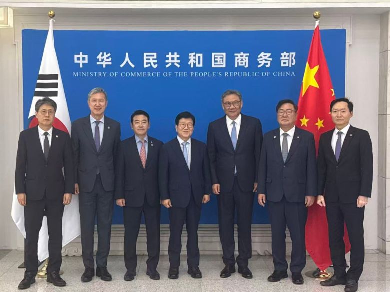 박병석 전 국회의장을 단장으로 하는 이재명 정부 특사단이 25일 중국 상무부를 만나 무역 전쟁 국면 속 협력 의지를 다졌다. 왕원타오 중국 상무부장은 “대(對)한국 무역 적자에 대해 기쁘게 생각한다”며 환영의 뜻을 내비쳤다.