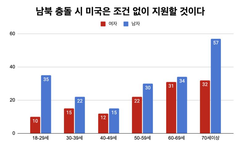 '남북 충돌 시 미국은 조건 없이 지원할 것이다' 동의 응답