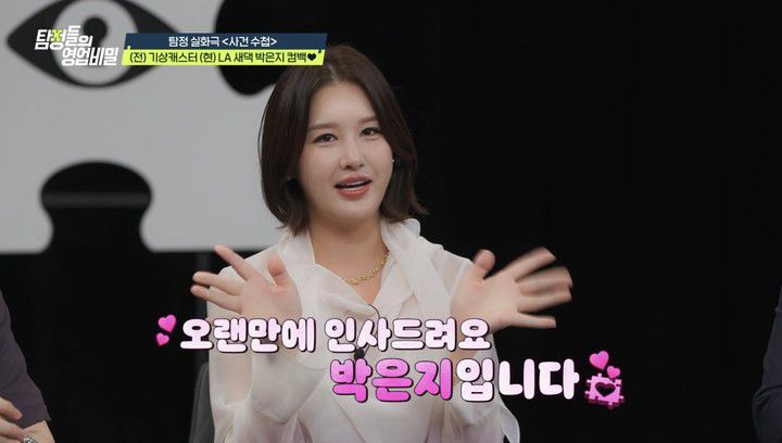 한편, 이날 방송에는 기상캐스터 출신 방송인이자 현재는 5세 딸의 엄마인 'LA 새댁' 박은지가 일일 탐정으로 합류한다.