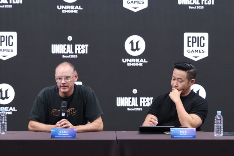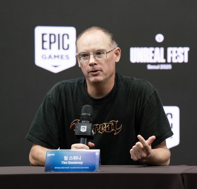 에픽게임즈의 팀 스위니 대표가 25일 '언리얼 페스트 2025' 키노트를 진행한 뒤 국내 미디어와 공동 인터뷰를 진행했다.