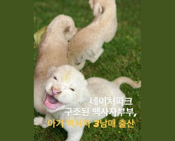 아기 백사자 3남매. 〈사진='네이처파크' 페이스북 캡처〉 |