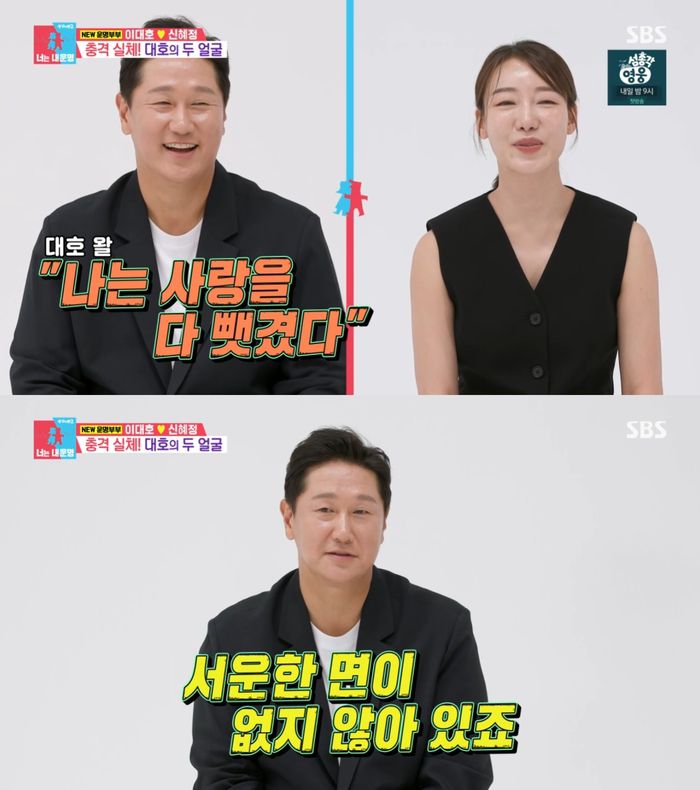 신혜정은 “남편이 아들에 대한 질투가 너무 많이 생겼다. 남편이 ‘나는 밀렸다’, ‘나는 사랑을 다 뺏겼다’라고 하는데 전혀 그렇지 않다”고 말했다. 그러나 이대호는 “아들이 야구를 시작하고 손이 많이 가는 시기다. 엄마가 더 많이 챙겨주는 게 맞는데 그래도 나는 남편이다 보니까 조금 서운한 면이 없지 않아 있다”고 서운함을 털어놨다.