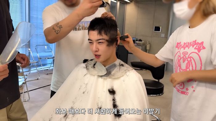 이어 차은우는 "내일이 디데이다. 머리를 자르러 왔다"며 입대를 위해 머리를 짧게 자르는 모습을 공개했다. 그는 "아까 5분 전 머리도 길었구나"라며 "내 두피가 이렇게 생겼구나. 처음 보는 거 같다"고 소회를 털어놨다.