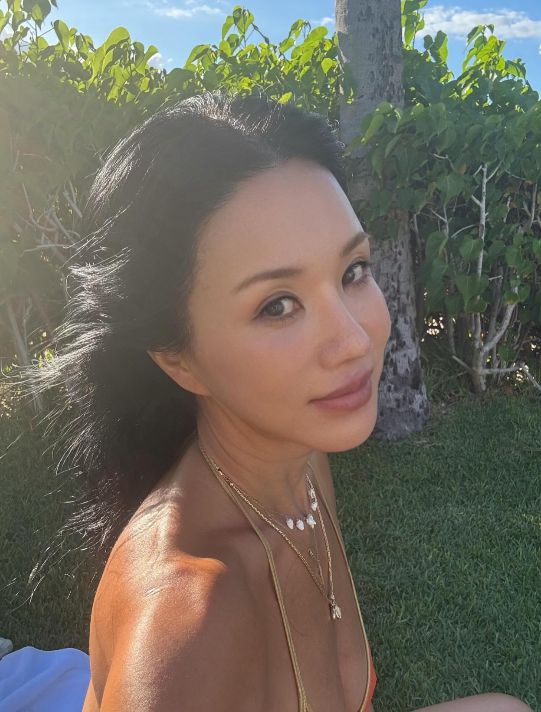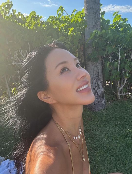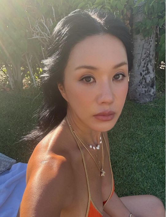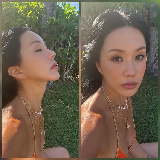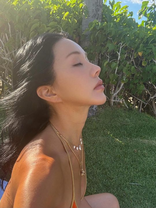 주황빛 비키니와 골드 액세서리로 포인트를 준 채 선탠을 즐기는 모습은 우아하면서도 자유로운 매력을 자아냈다.