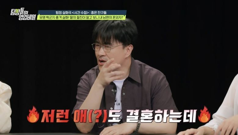 그러던 중 의뢰인의 남편이 딸 친구의 엄마와 은밀히 만나는 모습이 포착됐다. 딸의 절친이 알고 보니 남편의 혼외자였던 것이다. 의뢰인의 남편은 결혼 전 회사 직원과의 관계에서 아이를 가졌고, 불과 몇 달 뒤 아내 역시 임신을 하면서 동갑내기 두 딸을 두게 된 것이었다. 그는 결혼 이후에도 두 집 살림을 이어가며 내연 관계를 지속해온 것으로 밝혀졌다. 이를 지켜보던 데프콘은 "아무리 봐도 내가 나은데... 저 남자는 두 번이나 결혼한 셈이네"라며 분노와 억울함을 토로했다. 결국 의뢰인은 남편과 이혼을 선택했고, 딸과 함께 유학길에 오르며 사건은 마무리됐다.