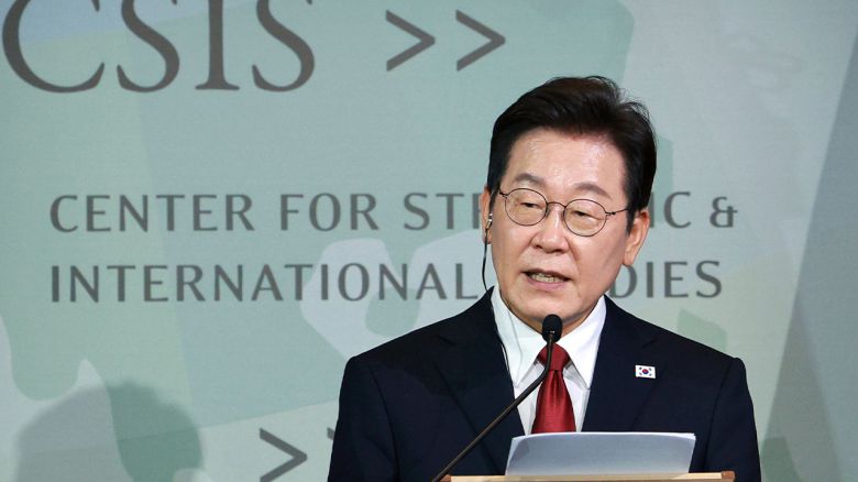 ▲ 이재명 대통령이 25일(현지시간) 미국 워싱턴DC 국제전략문제연구소(CSIS)에서 정책 연설을 하고 있다.