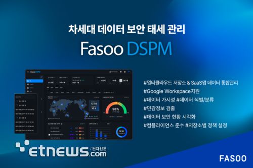 파수(대표 조규곤)는 멀티·하이브리드 클라우드 저장소부터 SaaS 애플리케이션까지 조직 전체 데이터를 관리할 수 있는 'Fasoo DSPM' 신규 버전을 출시했다고 밝혔다.
