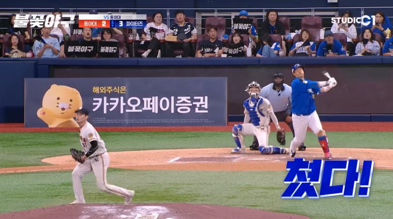 1-1로 맞선 2회 말 무사 1루 상황에서 박재욱의 깜짝 2점 홈런으로 불꽃 파이터즈가 앞선 상황. 4회 초 동아대가 한 점을 따라붙으며 3-2로 불꽃 파이터즈가 앞선 채 4회 말부터의 모습이 나타났다.