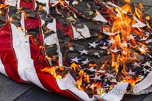 (서울=연합뉴스) 신창용 기자 = 도널드 트럼프 미국 대통령이 25일(현지시간) 성조기를 불태우는 사람들을 수사·기소하라고 법무부에 지시했다.
