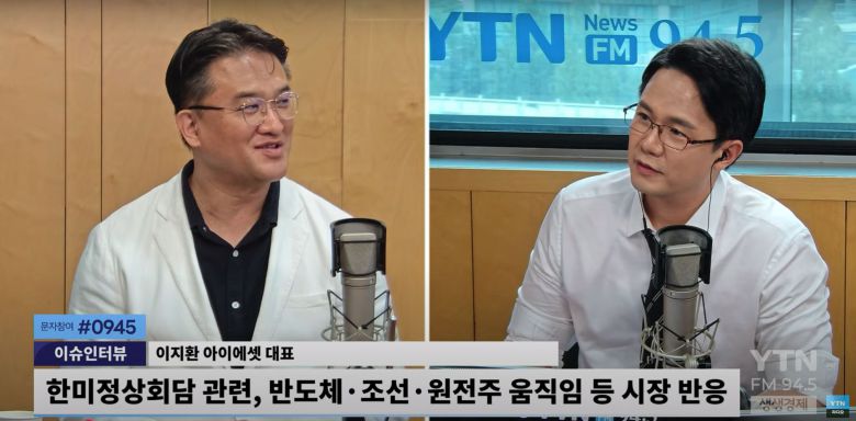 ◆ 조태현 : 오늘 새벽이었죠. 워싱턴 DC에서 열린 한미 정상회담이 마무리됐습니다. 처음에 이야기 나왔던 것보다 조금 더 길어져서요. 2시간 20분가량 회담이 진행됐습니다. 어떤 이야기들 오갔는지는 방송 보셨으니까 다들 잘 아실 것 같은데요. 이게 우리 시장에 어떤 영향을 미치게 될지 오늘은 이 부분 집중적으로 이야기 나눠보도록 하겠습니다. 아이에셋의 이지환 대표님 스튜디오에 모셨습니다. 대표님 어서 나오십시오.