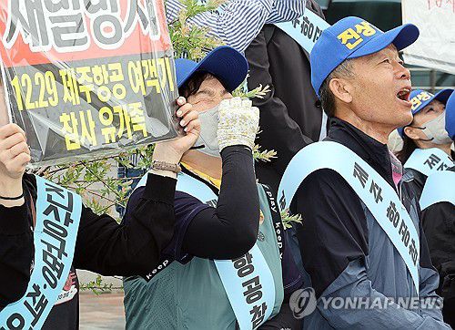 제주항공 여객기 참사 유가족, 국토교통부 앞 눈물의 집회