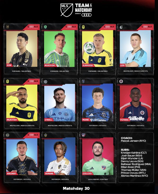 MLS는 26일(한국시간) 공식 SNS를 통해 30라운드 '이주의 팀' 11명을 선정해 발표했다.
