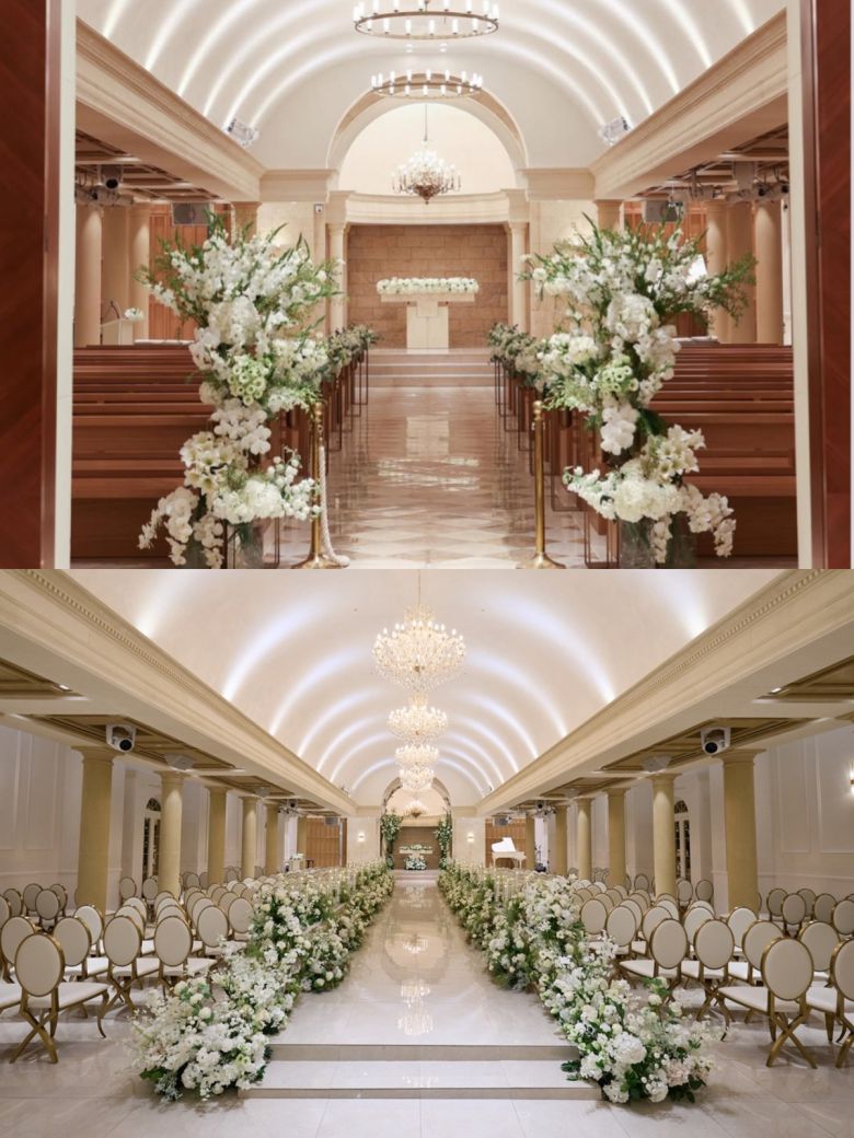 오씨가 계약한 업체는 영등포구에서 유명한 대형 웨딩홀로 성당과 비슷한 풍경을 연출할 수 있어 예비 부부들에게 인기를 끌었다. 지난 2월 이 업체는 홈페이지에 “8월 리뉴얼(새단장) 오픈한다”며 공지를 올렸다. 오씨를 비롯한 기존 계약자들에겐 “채플홀 분위기를 유지하면서 꽃이 더 풍성해질 것”이라고 안내했다. 하지만 계약자들은 실제 바뀐 모습이 업체의 설명과 다르다고 입을 모았다.