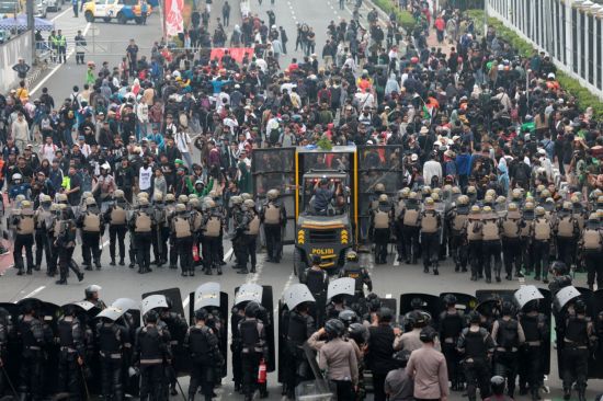 26일(현지시간) 인도네시아 매체 자카르타 글로브와 안타라 통신 등에 따르면 전날 자카르타 남부 스나얀에 있는 국회 의사당 인근에서 대학생과 노동자 등 수천 명이 대규모 집회를 열었다.
