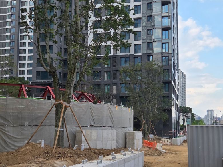 이와 관련해 조합 관계자는 “당초 방음벽을 재건축 부지 대지 경계선에 설치하는 것으로 계산했는데 여러 복잡한 기준이 충돌하면서 일부 단지는 대지 경계선보다 안쪽으로 방음벽을 설치하게 됐다”고 설명했다.