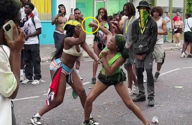 영국 런던 노팅힐 카니발 첫날, 두 여성이 거리 한복판에서 난투극을 벌이는 장면이 포착됐다. 출처=틱톡 |