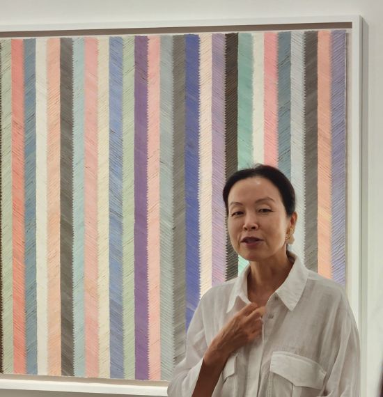 이번 전시에는 '아트바젤 바젤 2024'의 언리미티드 섹션에서 호평받는 대형 작업 'Traces'도 국내 최초로 공개된다. 가로 8m에 달하는 대작으로, '흔적'이란 제목 속에 '산'과 '물'의 형태도 엿보인다.
