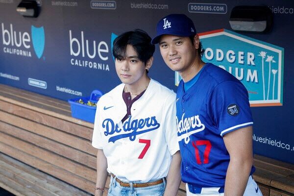 7번 등번호를 단 다저스 유니폼 상의를 옅은 색 청바지에 넣어 입은 뷔는 더그아웃으로 들어가면서 팬들의 환호에 손을 흔들며 화답했다.