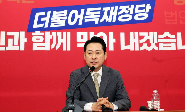 장동혁 국민의힘 신임 당 대표가 26일 서울 여의도 국회에서 취임 기자회견을 하고 있다. 김경호 선임기자 jijae@hani.co.kr |