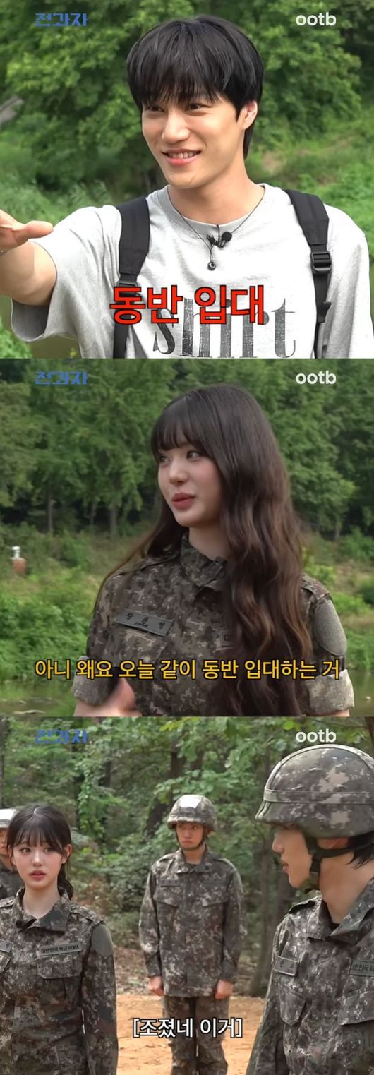 곧바로 등장한 동반 입대 멤버는 장원영이었다. 군복을 갖춰 입은 장원영은 환하게 웃으면서 인사했고, 카이는 장원영의 등장에 놀라며 “동반 입대를 왜 선택하신 거예요?”라고 물었다. 이에 장원영은 “아니 왜요. 오늘 같이 동반 입대하는 거 괜찮지 않으세요?”라고 기대감을 드러내며 눈을 반짝였다.