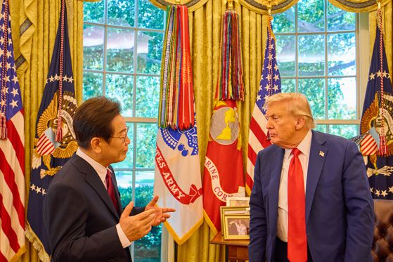 트럼프 대통령은 25일(현지시간) 이재명 대통령과 가진 첫 정상회담 자리에서 “김정은과 올해 만나고 싶다”고 말했다. 이 대통령이 먼저 “김정은도 만나달라”고 제안했고, 트럼프 대통령은 “매우 좋은 일이라고 생각한다. 추진할 것”이라고 화답했다. 트럼프 대통령은 1기 임기 당시에도 김 위원장을 세 차례에 걸쳐 만난 바 있다.