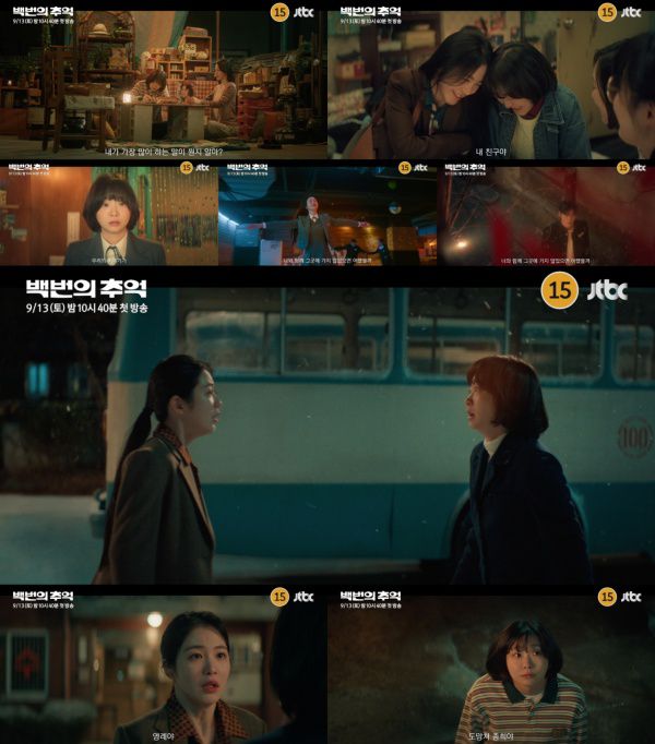 9월 13일 첫 방송되는 JTBC 새 토일드라마 '백번의 추억'은 1980년대 100번 버스 안내양 영례와 종희의 빛나는 우정, 그리고 두 친구의 운명적 남자 재필을 둘러싼 애틋한 첫사랑을 그린 뉴트로 청춘 멜로드라마다. 26일 공개된 3차 티저 영상에는 버스안내양 영례(김다미)와 종희(신예은), 그리고 재필(허남준)의 반짝이는 순간을 담았던 1, 2차 티저와 달리, 우정과 첫사랑의 이면에 감춰진 비밀이 있다는 사실이 암시됐다.