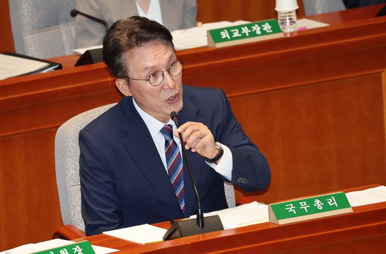 김민석 국무총리가 26일 오전 서울 여의도 국회에서 열린 제428회 국회(임시회) 예산결산특별위원회 2차 전체회의에서 의원 질의에 답변하고 있다. 뉴스1