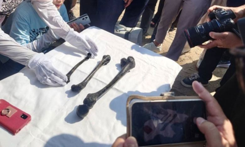 지난 25일 일본 야마구치현 조세이 탄광 사고 현장에서 수습된 인골로 추정되는 물체 3점을 수습하고 있다. 대한불교관음종 제공 |
