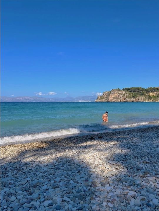공개된 사진 속에는 바닷가에서 수영을 즐기는 남편 류성재의 모습이 담겼다. 그는 상의를 탈의한 채 다부진 가슴근육을 드러내며 시선을 압도했다.
