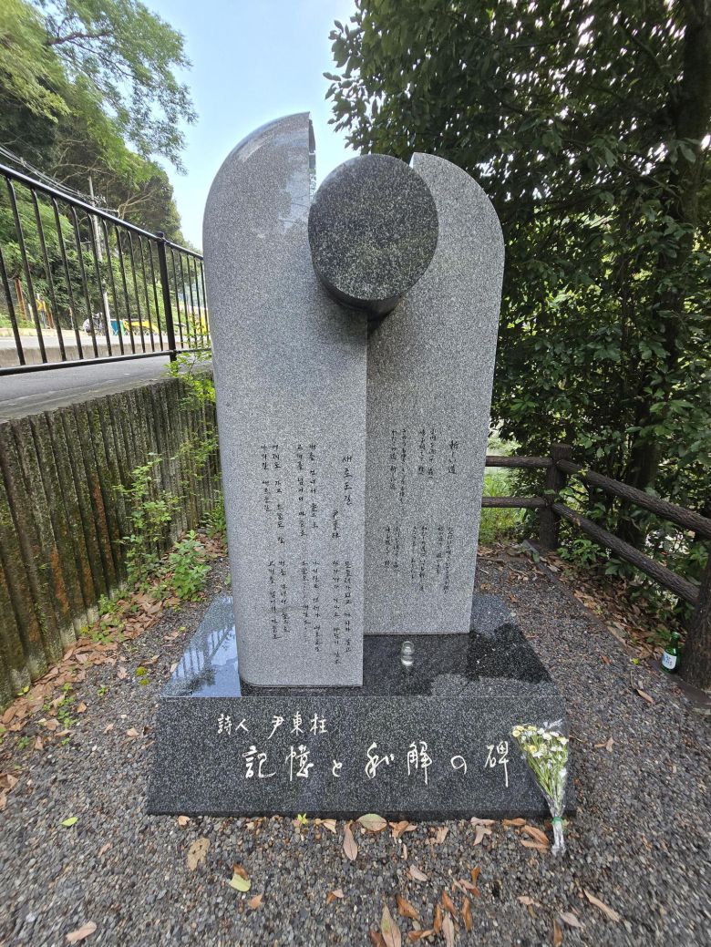 윤동주 시인의 시비 ‘기억과 화해의 비’. 이즈미 교수 제공