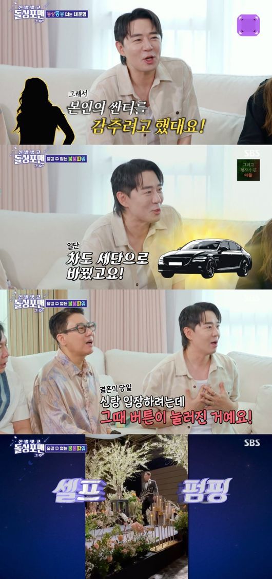 이어 “다 안고 신랑 입장하는데 그때 버튼이 눌러졌다. 가수들이 밑에서 등장하는 펑핑대가 없는데 제 스스로 허벅지로 했다. 신랑 입장하는데 빡 섰다. 주변에서 환호가 들려오는데 거기서 흥분을 했다. 시작부터 끝까지 춤추면서 갔다”라고 말해 웃음을 자아냈다.