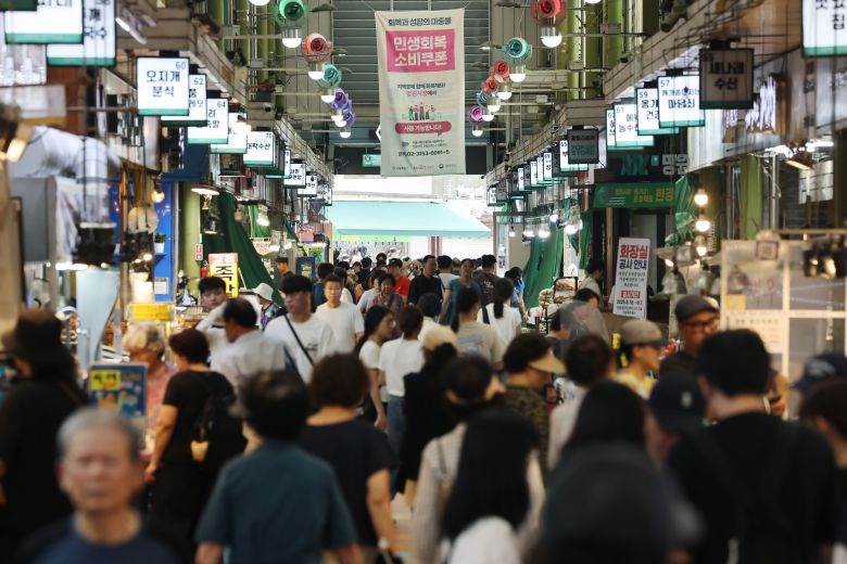 /연합뉴스 26일 서울 마포구 망원시장에 민생 회복 소비 쿠폰 현수막이 걸려 있다. 한국신용데이터에 따르면, 정부가 지난달 ‘민생 회복 소비 쿠폰’ 배포를 시작한 뒤 4주(7월 21일∼8월 17일) 동안 전국 소상공인 평균 카드 매출액이 1년 전보다 6.44% 늘었다. [조선일보] - Copyrights ⓒ 조선일보 & chosun.com, 무단 전재 및 재배포 금지 -이 기사의 카테고리는 언론사의 분류를 따릅니다.0공유하기