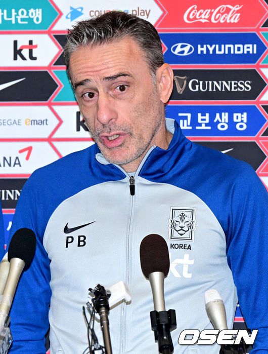 [OSEN=도하(카타르), 지형준 기자] 아랍에미리트(UAE) 축구국가대표팀 파울루 벤투 감독이 27일(현지시간) 카타르 도하 메인미디어센터(MMC)에서 열린 공식 기자회견에 참석해 질문에 답을 하고 있다. 2024.01.27 / jpnews.osen.co.kr