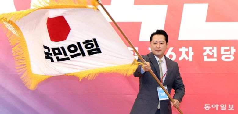 국민의힘 장동혁 신임 대표가 26일 오전 서울 여의도 국회도서관에서 당 대표로 선출된 뒤 당기를 흔들고 있다. 장 대표는 당선 일성으로 “단일대오로 뭉쳐서 제대로 싸우는 야당의 모습을 보여드리겠다”며 “단일대오에 합류하지 못하는 분들과 당을 분열로 몰고 가는 분들에 대해선 결단이 필요하다”고 밝혔다. 장승윤 기자 tomato99@donga.com |