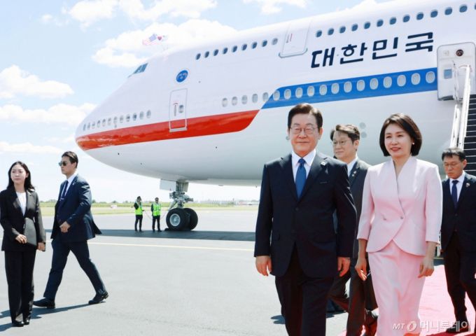 [필라델피아=뉴시스] 고범준 기자 = 이재명 대통령과 김혜경 여사가 26일(현지 시간) 필라델피아 국제공항에 도착해 이동하고 있다. 2025.08.27. bjko@newsis.com /사진=