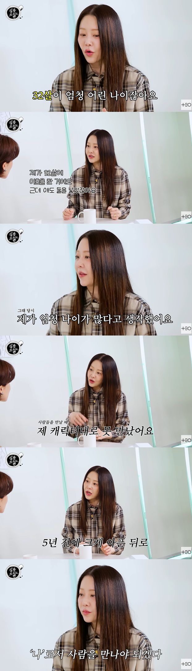 이어 "32살이 엄청 어린 나이인데 제가 34살에 이혼을 했다. 근데 애도 둘을 낳았었다. 그 당시에 제가 엄청 나이가 많고, 겪을 거 다 겪었다고 생각했다. 그래서 사람들을 만날 때 제 캐릭터대로 못 만났다"고 직접 이혼을 언급하며 속사정을 고백했다.