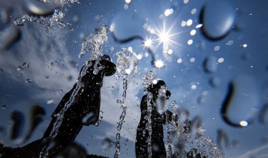 대구 달서구 두류공원 2·28자유광장 바닥분수에서 어린이들이 물놀이하며 더위를 식히고 있다. 연합뉴스