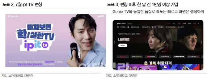 신은정 DB증권 연구원은 “지난 7월 출시한 ipit TV는 기상 영향을 받던 기존 위성방송 한계를 극복하면서 출시 한 달 만에 1만명 이상 가입자를 확보했다”며 “방송 가입자 감소세를 상쇄하고 가입자당평균매출액(ARPU) 상승에 기여할 것”이라고 설명했다.