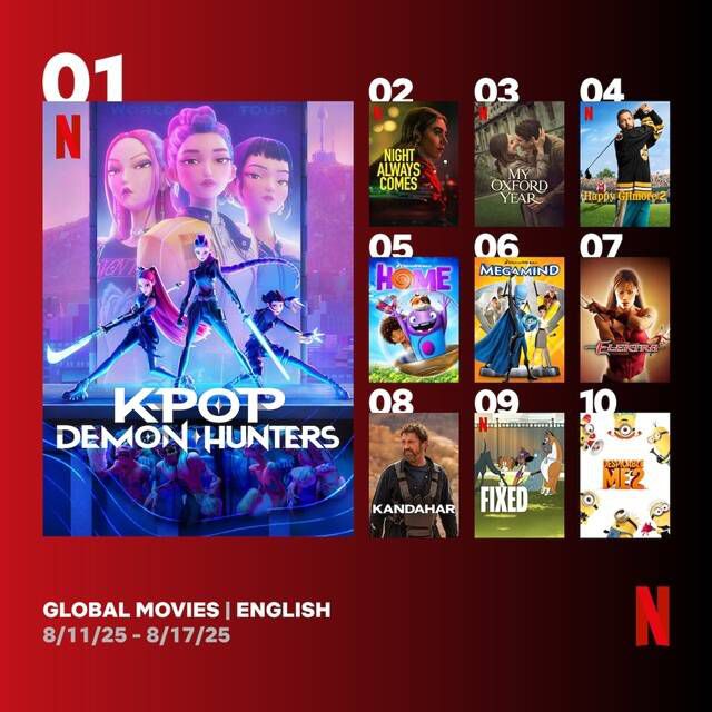 한편 넷플릭스 시청자 수는 공개 후 91일 간의 누적 시청 기록을 기반으로 집계된다. 이에 6월 20일 공개된 '케이팝 데몬 헌터스'는 이후 약 3주 간 누적 시청 수가 더해질 예정으로 영화 부문과 TV 쇼 부문을 통틀어 역대 가장 많이 본 넷플릭스 작품에 등극할 가능성도 남아 있다.