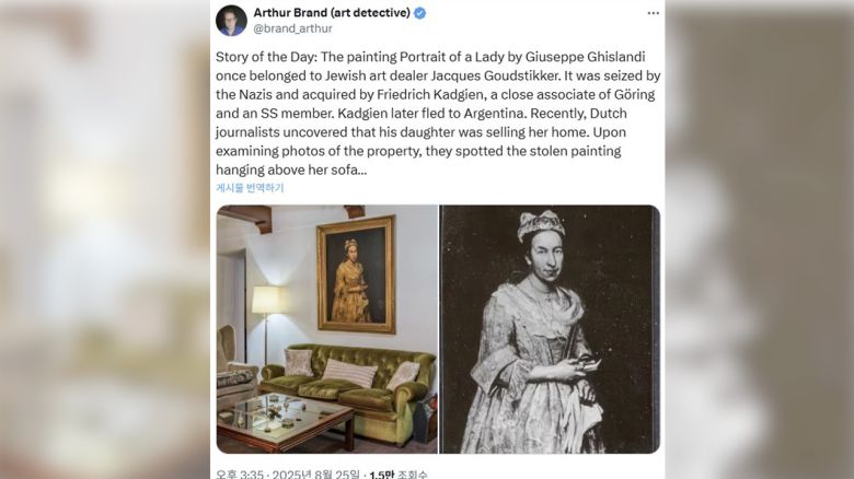 80여 년 전 나치가 네덜란드 암스테르담에서 약탈한 명화가 아르헨티나의 부동산 매물 광고에 등장해 귀추가 주목된다고 영국 일간 가디언이 보도했습니다.