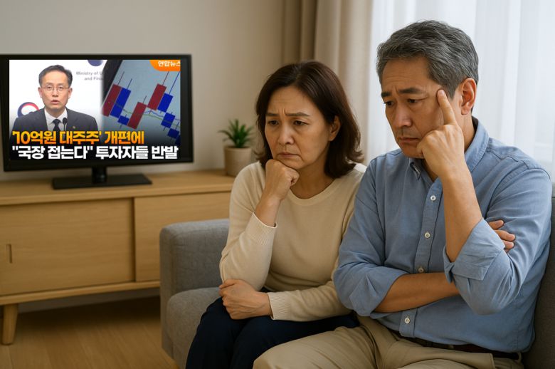 최근 대주주 양도세 기준을 둘러싼 논란이 일고 있지만 주식 자산가인 세상 씨는 올 연초에 주식 다 팔았으니 상관없다고 생각했다. 이후 대주주 요건에 걸리지 않은 선에서 같은 종목을 다시 샀다가 팔았는데 대주주 양도세율이 적용됐다. 심지어 세율도 더 높아졌다는데 무슨 일이 생긴 걸까 [챗GPT를 이용해 제작함·연합뉴스 TV 유튜브 갈무리] |