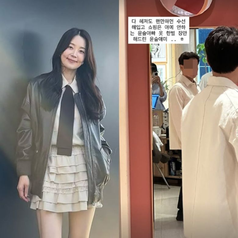 한지혜는 27일 자신의 인스타그램 스토리에 "다 해져도 웬만하면 수선해 입고 쇼핑은 아예 안 하는 윤슬 아빠. 옷 한 벌 장만해 드린 윤슬 애미"라는 글과 함께 한 장의 사진을 게재했다.