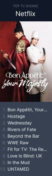 더불어 ‘폭군의 셰프’는 2회 기준 올해 tvN 토일드라마 중 티빙 라이브 수치 최고를 경신했고 8월 27일 기준 오늘의 티빙 1위를 차지하며 국내 OTT에서도 성과를 내고 있다. 방영 첫 주 만에 넷플릭스 글로벌 TOP 10 비영어 TV쇼 부문 4위로 진입했다.