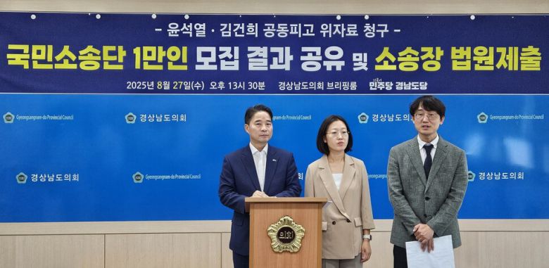 윤석열·김건희 부부의 불법 비상계엄 때문에 정신적 피해를 봤다며 이들 부부를 상대로 경남도민 1375명이 1인당 10만원씩 위자료를 청구하는 소송을 제기했다.