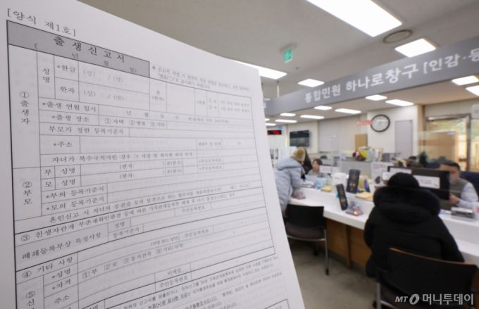 [서울=뉴시스] 황준선 기자 = 3일 서울 성동구 왕십리도선동주민센터에 출생신고서가 비치돼 있다. 2025.01.03. |